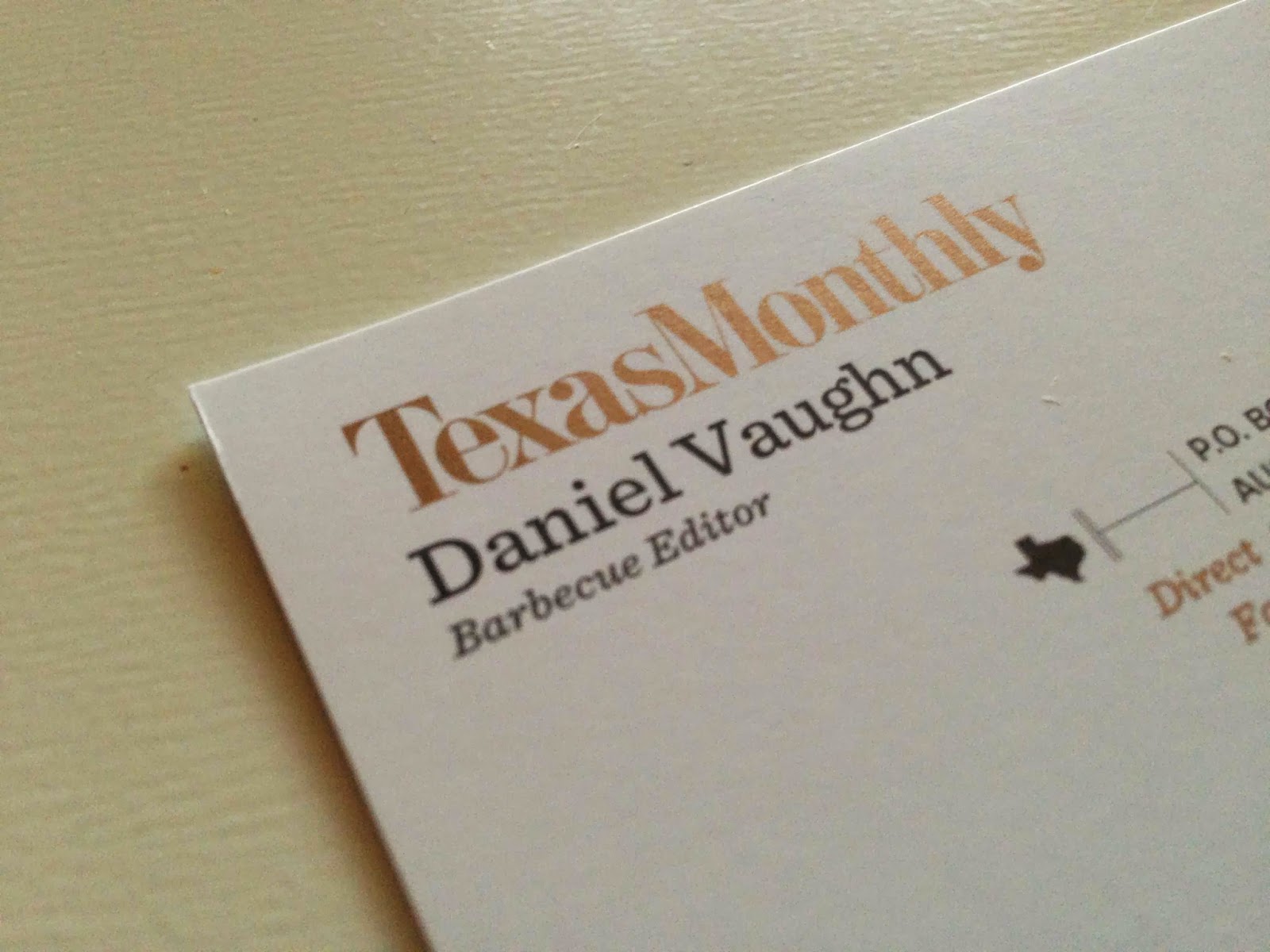 4/15: I officially started my new job as Barbecue Editor of Texas Monthly...