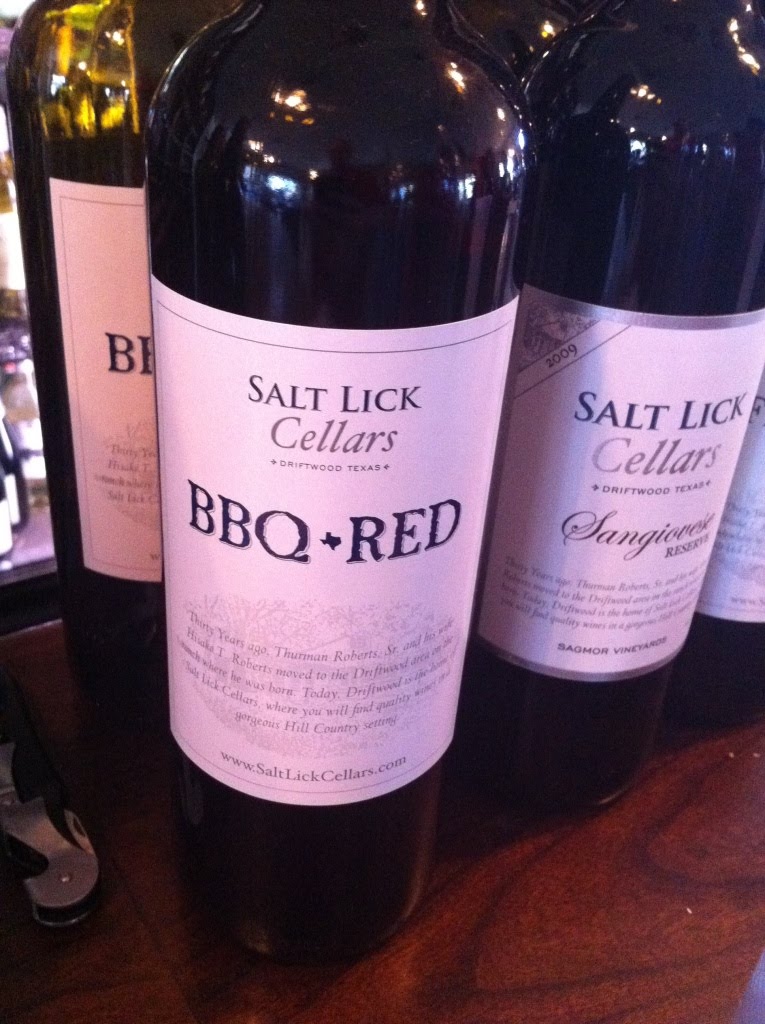 Update: I've often thought that the Salt Lick is a joint that serves very respectable smoked meat, and is vastly overrated at the same time. The wait for a table on this sprawling campus of barbecue can exceed and hour, but no worries as you can enjoy drinks and live music al fresco on one of the many picnic tables provided. A visit here isn't just about barbecue. It's about atmosphere, catching up with friends, and taking the Salt Lick vibe while enjoying a few cold ones or some of the wine produced by Salt Lick Cellars from the on-site vineyard. Always good marketers the folks at Salt Lick found a way to make middle-of-the-road red and white wines (made from Zinfandel and Viognier grapes respectively) become their best sellers simply by calling them "BBQ Red" and "BBQ White". I fell for it, but I fell harder for the Sangiovese which was much more pleasing and drinkable on its own. With the Sangiovese as an option (all of these options can only be purchased on site at the Salt Lick) I don't see a reason to purchase the others if only for kicks based on the name.
